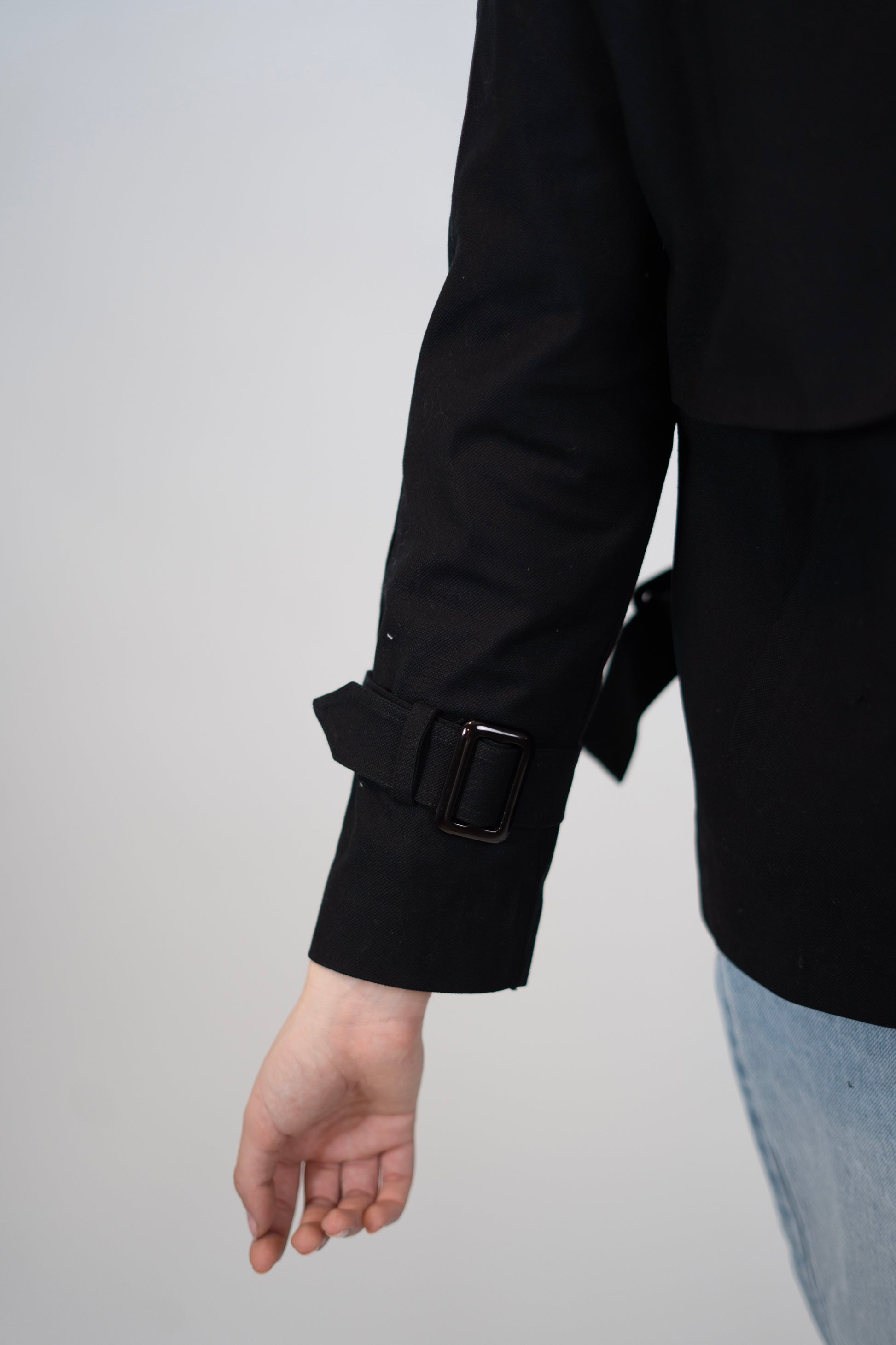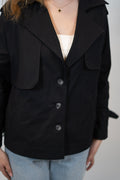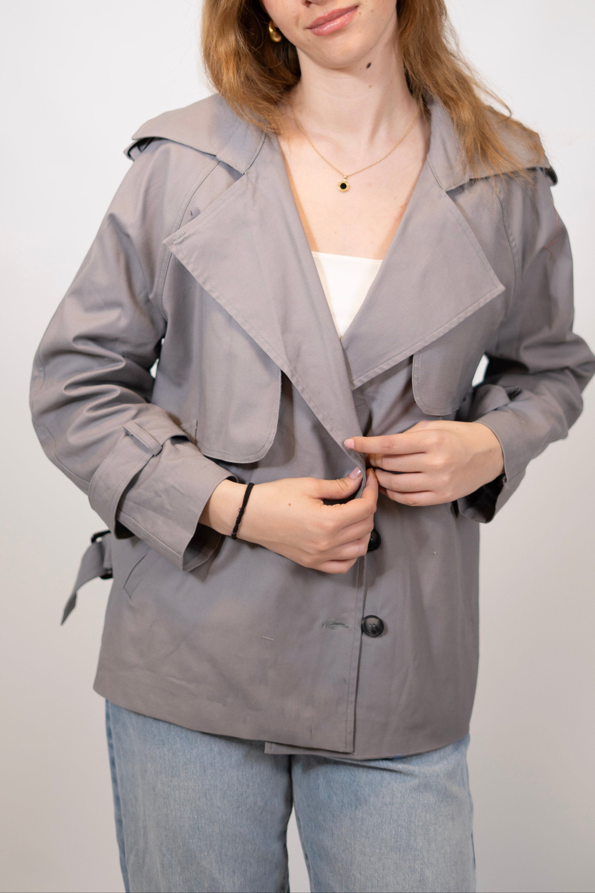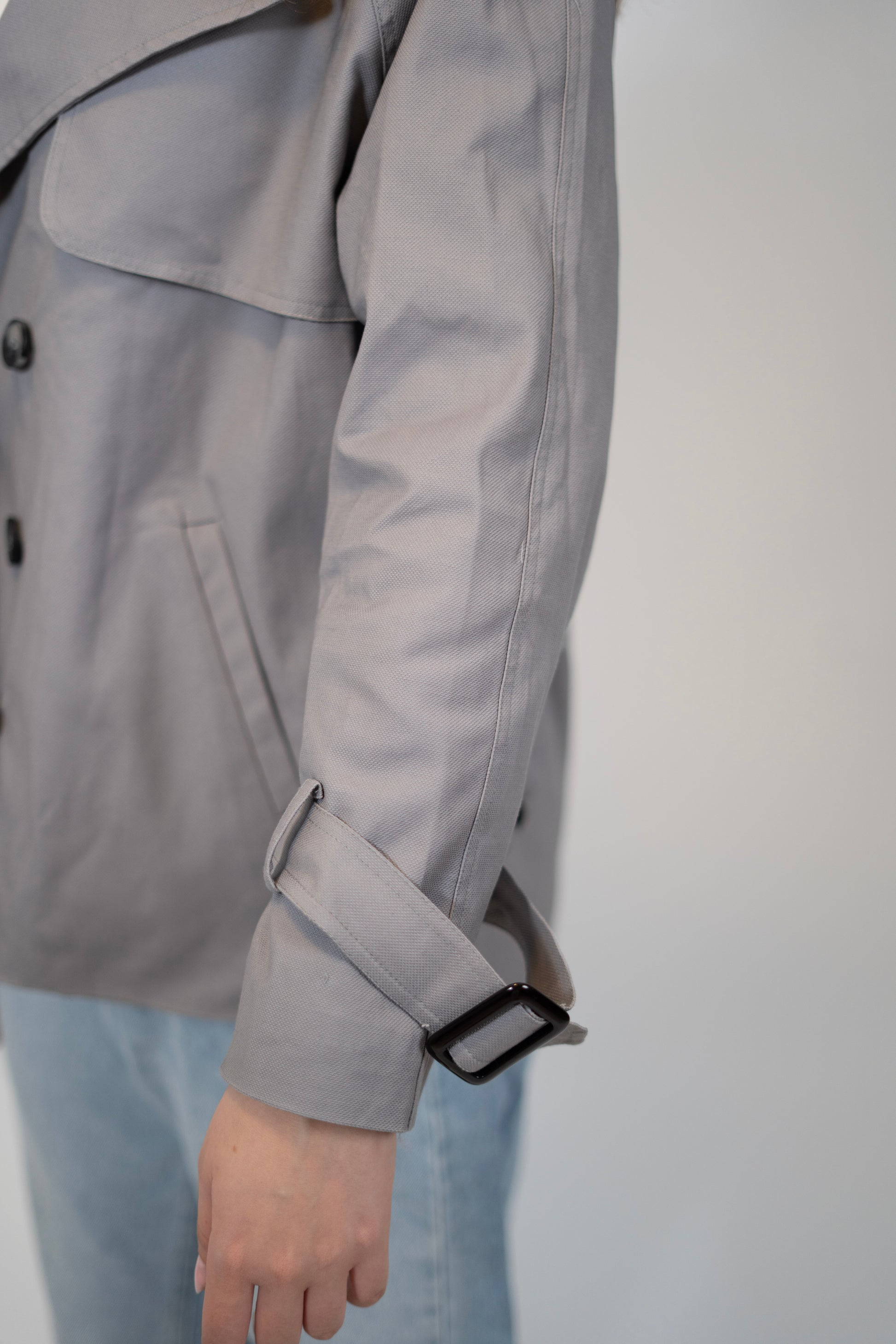 A stylish cropped trench coat! Comes in two basic colors.