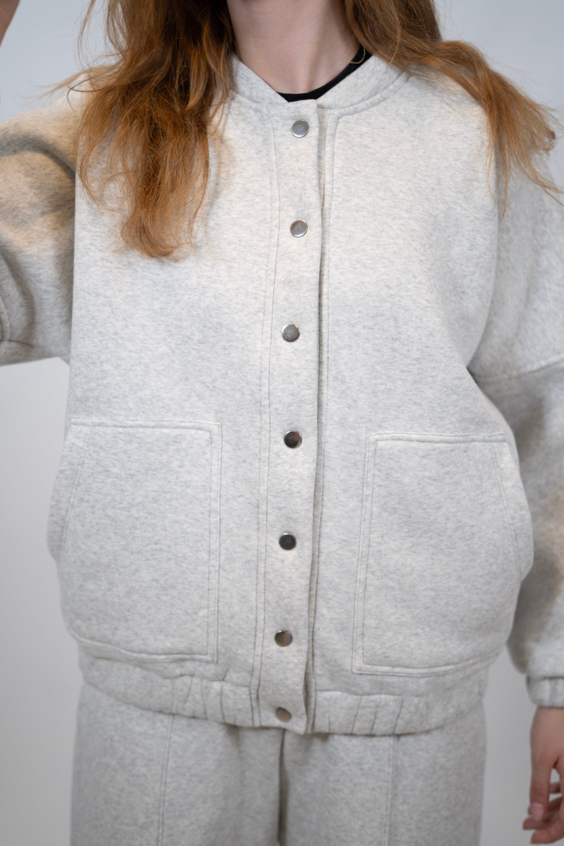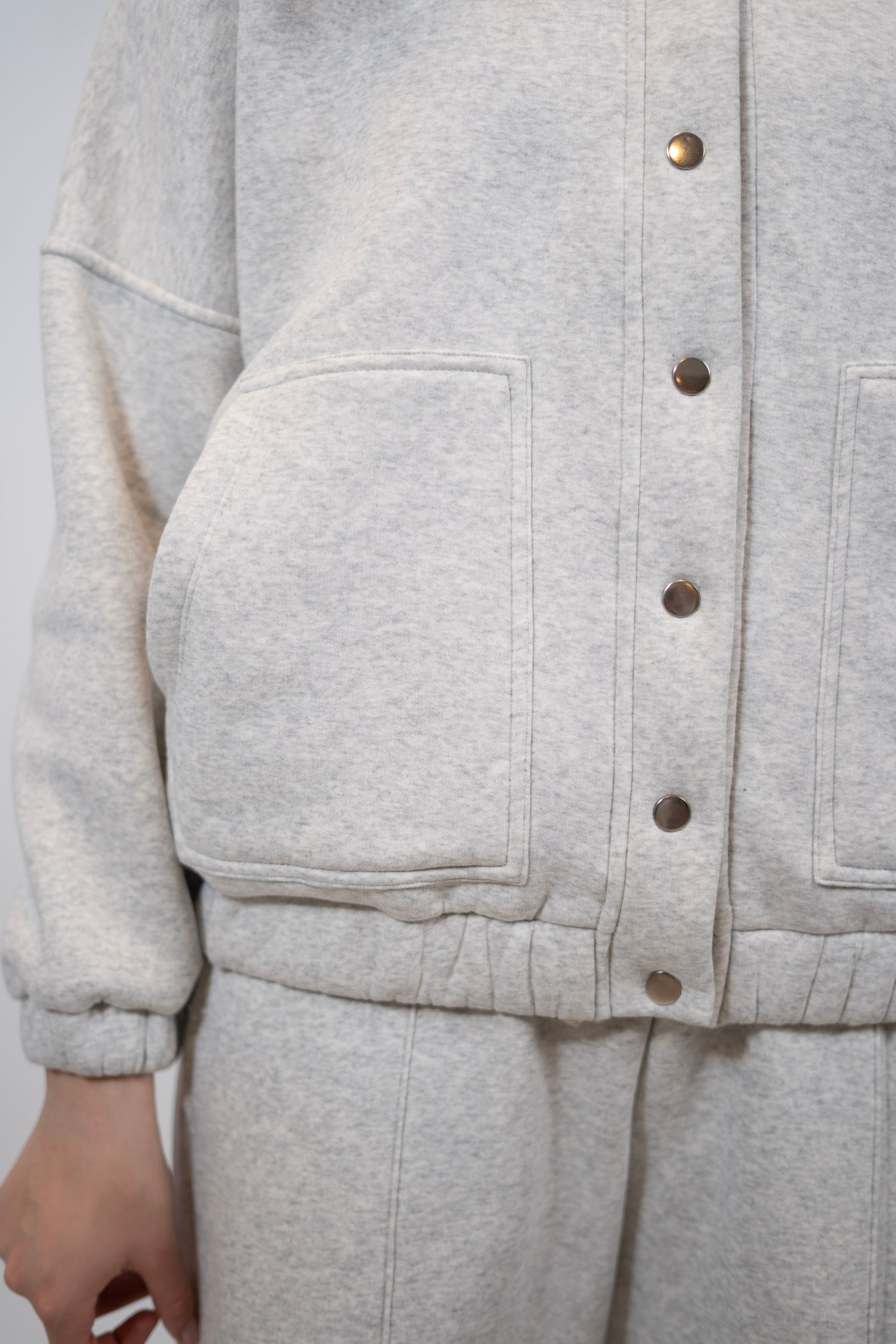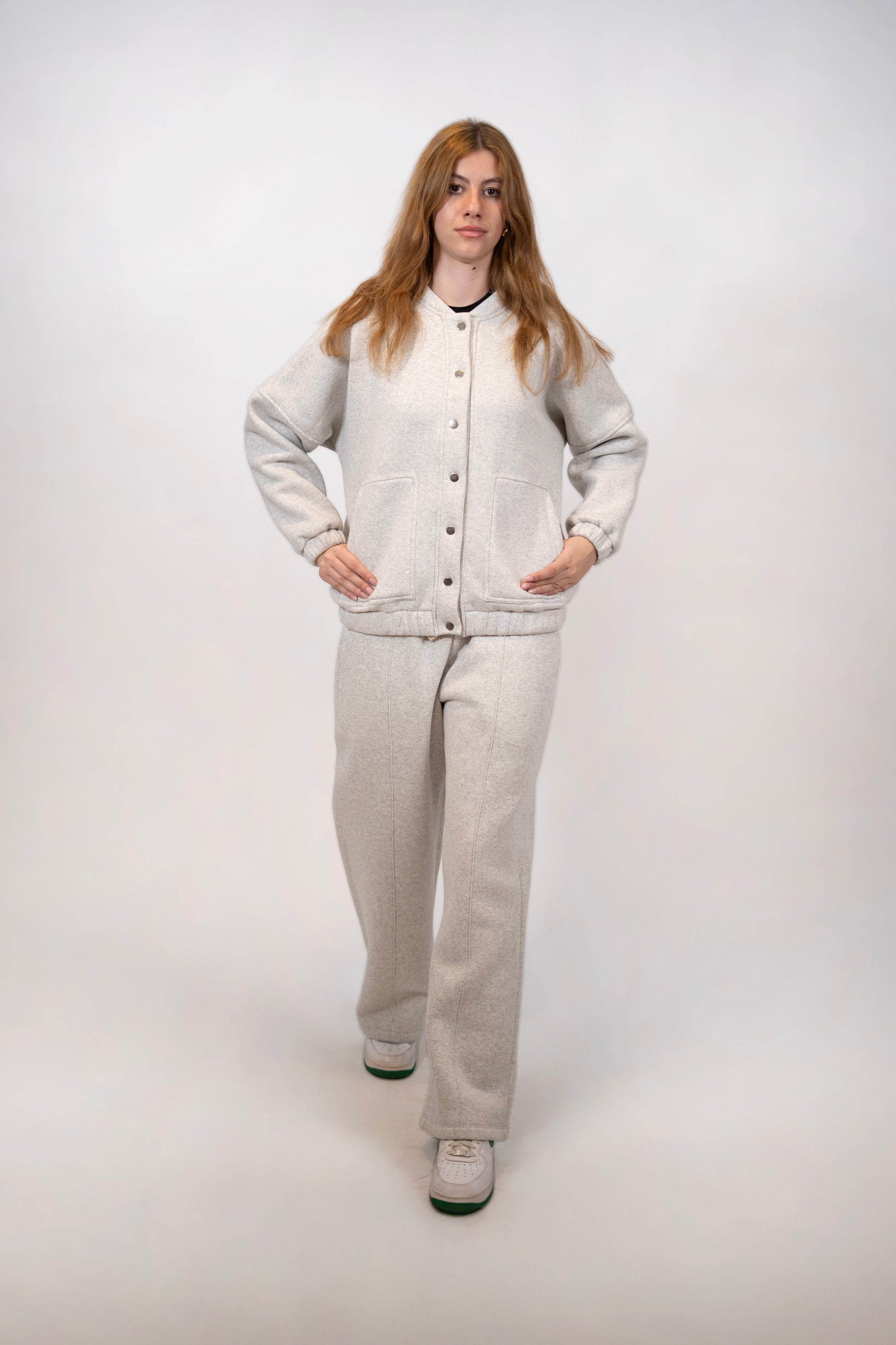 Grey set with snaps. Wide leg fit with internal fleece lining.