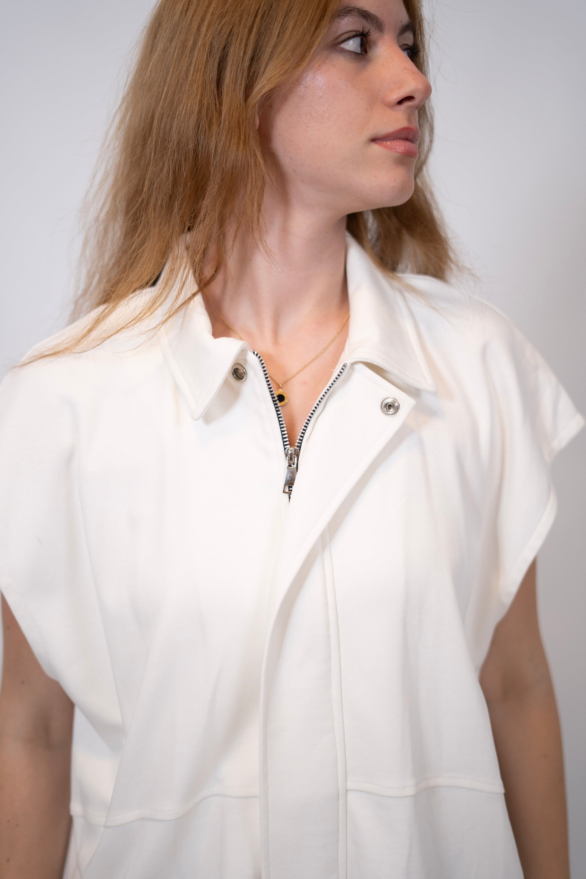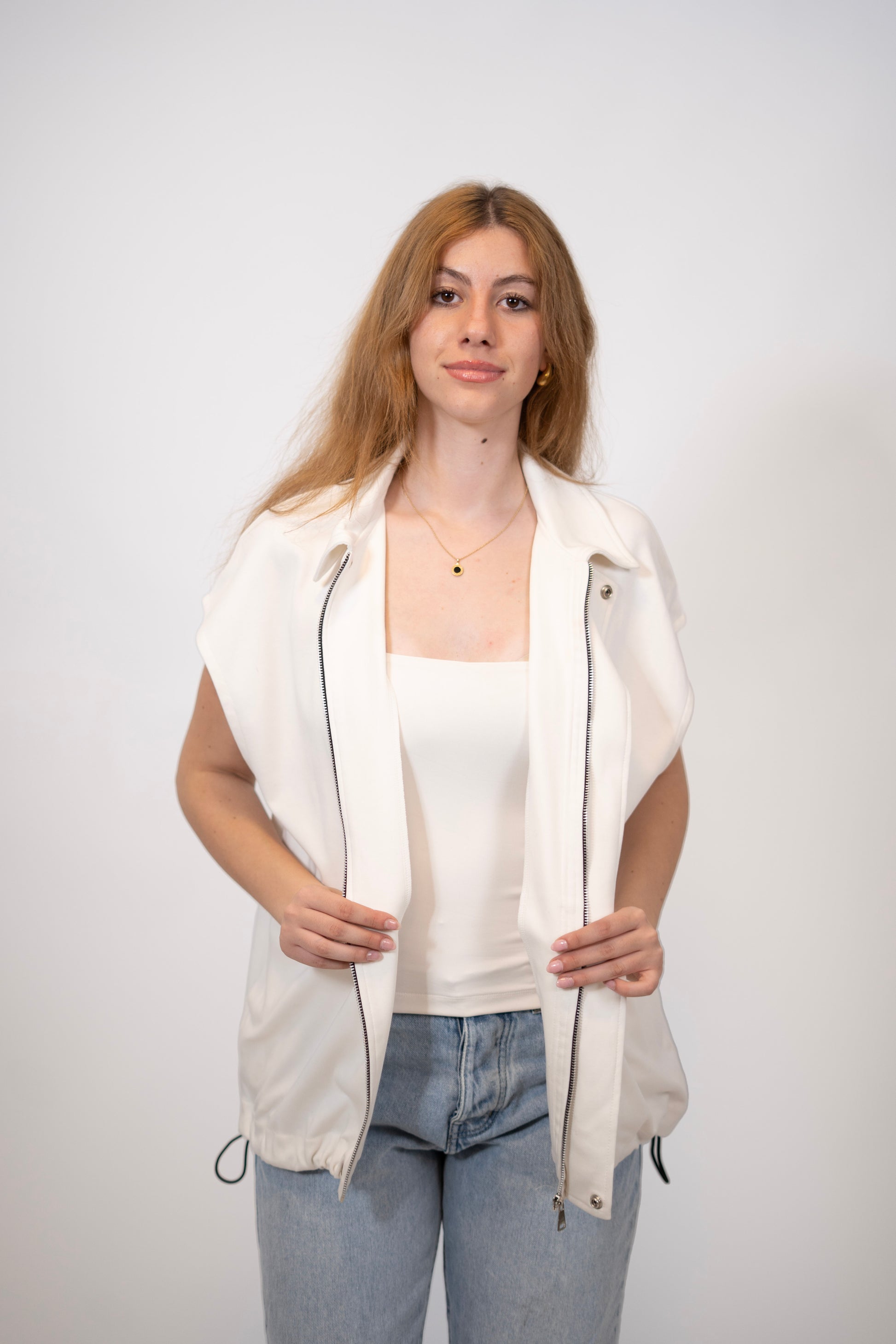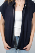 Mid-length sleek vest with a smooth zipper. Perfect for layering.